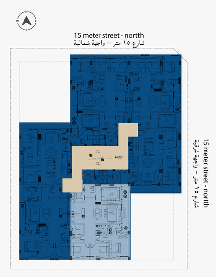 صمم نموذج أ (ثلاثة غرف نوم) بمساحات واسعة وخصوصية عالية للعائلة، حيث يوجد موزع بعد الباب الرئيسي للشقة يمكن الساكن من الحركة بخصوصية من الصالة الى خارج الشقة دون المرور بالمجلس بوجود بابين سحاب لاغلاق أي منها في حال الرغبة بذلك.
