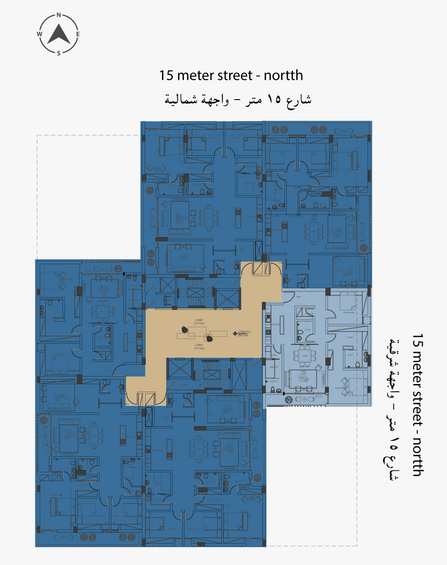 نموذج ج صمم بغرفتين نوم مع تصميم يراعي الخصوصية، حيث الدخول لغرف النوم بدون المرور بالصالة وبوجود باب منفصل لصالة الجلوس.